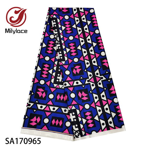 Nueva llegada cómoda tela de satén con estampado de cera de poliéster 100% para estilos de vestido africano de satén