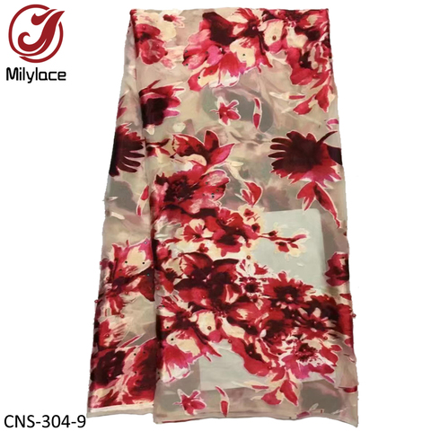 Vera seta con tessuto di pizzo George 2 iarde tessuto motivo floreale stampa tessuto di seta musulmano