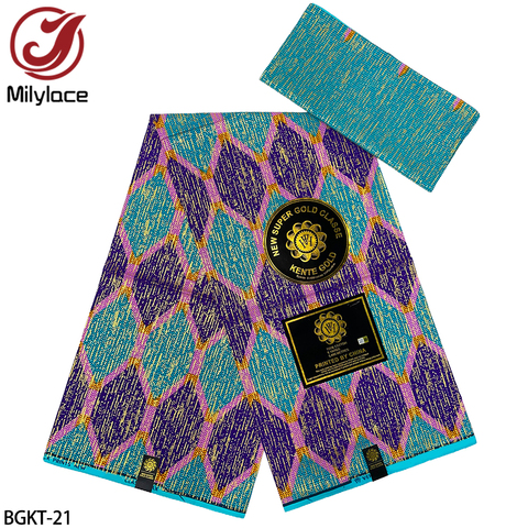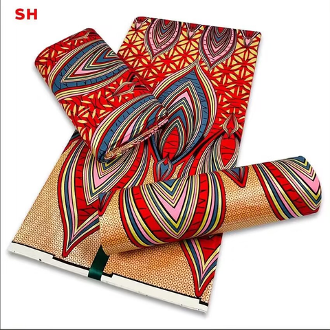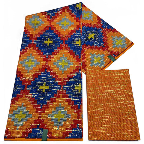 New Kente 2 + 4 Yards Vàng 100% Sáp Chất Liệu Cotton Ankara Phi Sáp In Vải